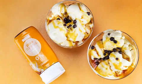 Dessertsaus med jordbær. Inneholder søtningsmiddel. Kan virke avførende ved stort inntak. Med et naturlig innhold av sukker.