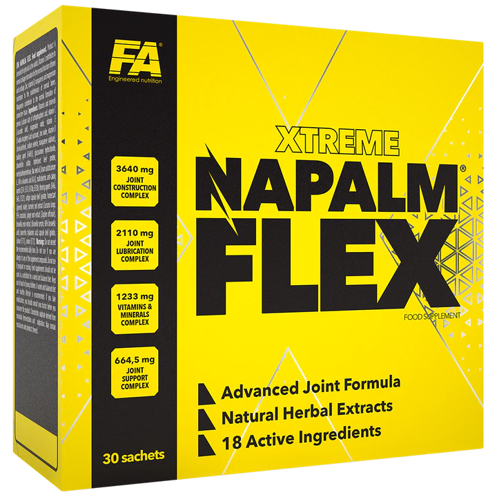 NAPALM Flex supplerer det daglige kostholdet med flere aktive ingredienser som kan ha en positiv effekt på muskel- og skjelettsystemet.
