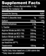 Også vannfri betain, L-taurin og teobromin for å hjelpe til med å maksimere treningsytelsen.