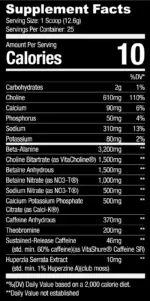 Maksimer treningsytelsen med 3,2 g Beta Alanine, 1,5 g VitaCholine og 1,5 g Betain vannfri.